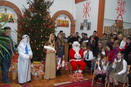 La Sfânta Liturghie copiii s-au cuminecat, iar Moş Crăciun le-a împărţit daruri: dulciuri, cărţi şi jucării.