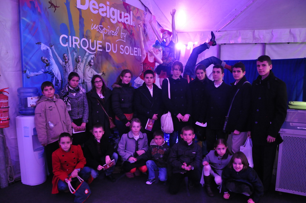 Un grup de copii din cadrul Şcolii parohiale „Sfinţii Martiri Brâncoveni” au participat, duminică, 31 martie 2013, la încheierea vacanţei, unii însoţiţi de părinţi, la spectacolul Kooza, susţinut la Madrid de către artiştii companiei Cirque du Soleil.