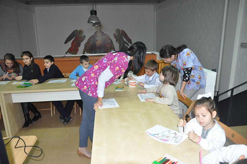 Duminică, 30 martie 2014, după Sfânta Liturghie, la iniţiativa doamnei preotese, Gina Cimpoca, a fost organizată în cadrul şcolii parohiale, sub titlul “Educaţie pentru sănătate”, o activitate destinată copiilor, având ca scop informarea corectă cu privire la igiena orală şi dentară. Invitaţi au fost: dl dr Ioan Emil Revnic, dna dr Andreea Raluca Cosic şi dra dr Iulia Şerb.