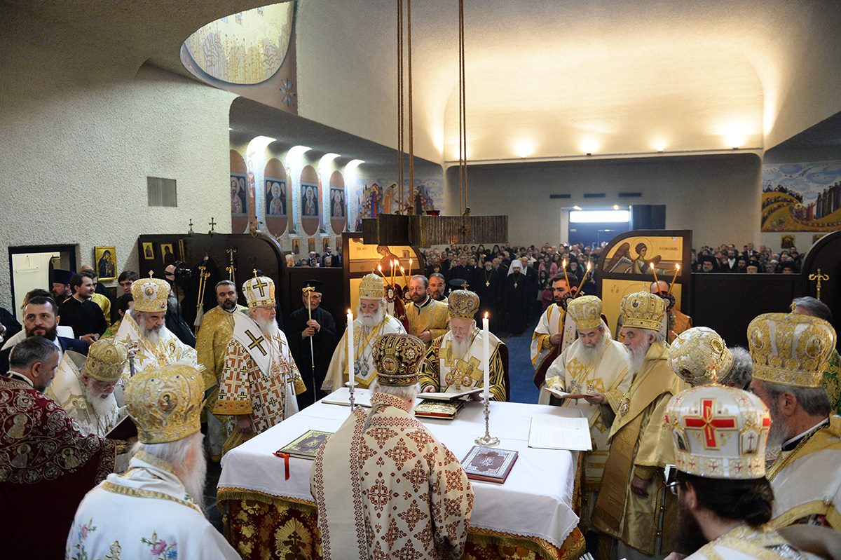 Sfânta slujbă a fost săvârşită de Sanctitatea Sa Bartolomeu, Patriarhul Ecumenic, împreună cu întâistătătorii tuturor Bisericilor Ortodoxe, între care s-a aflat şi Preafericitul Părinte Patriarh Daniel.