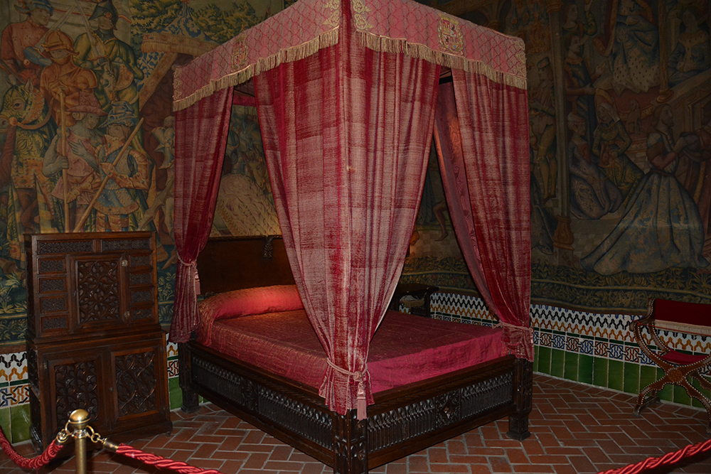 În dormitorul regal tronează un pat cu baldachin țesut cu brocart și fir de aur. Patul este din lemn de alun și după dimensiunea lui îți poți da seama de cât de mici erau bărbații din acele timpuri. În acel pat încape cel mult un adolescent de înălțime medie din vremurile noastre.