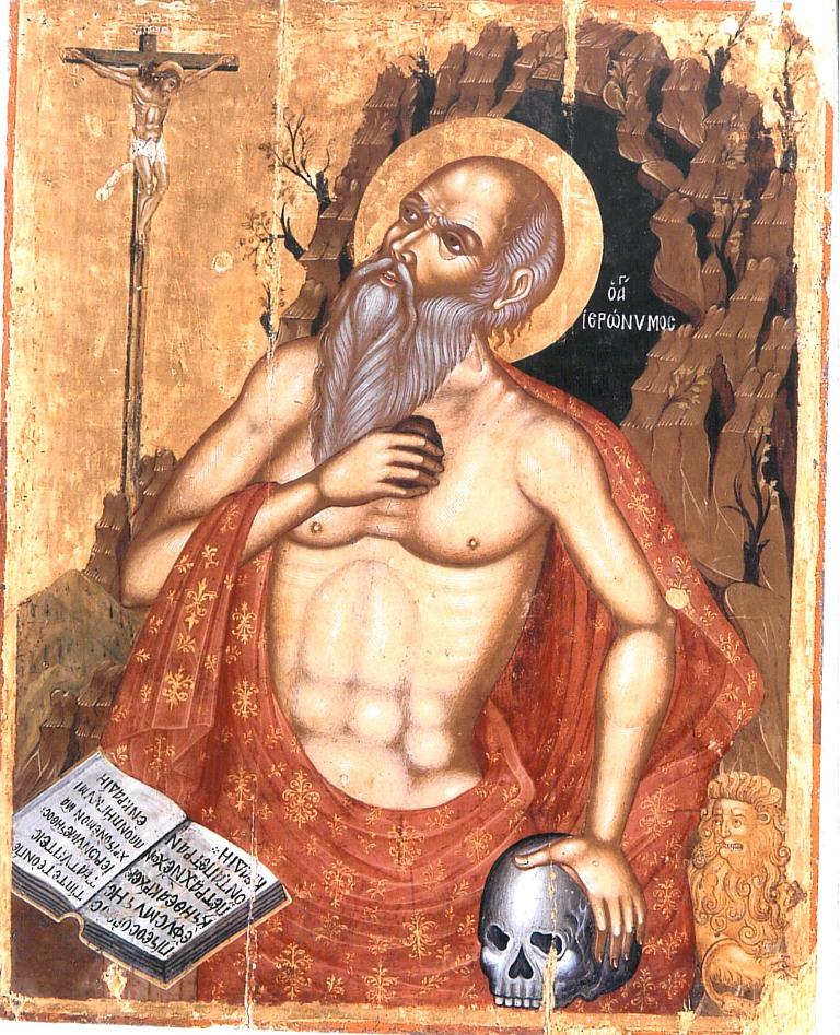 ΑΓΙΟΣ ΙΕΡΩΝΥΜΟΣ - 2Fericitul Ieronim, născut Sophronius Eusebius Hieronymus, (n. cca. 347, Stridon, azi Strigova, Croația – d. 30 septembrie 420, Betleem, în Palestina), a fost un important teolog creștin, considerat unul din cei patru părinți ai Bisericii de Apus, doctor al Bisericii.