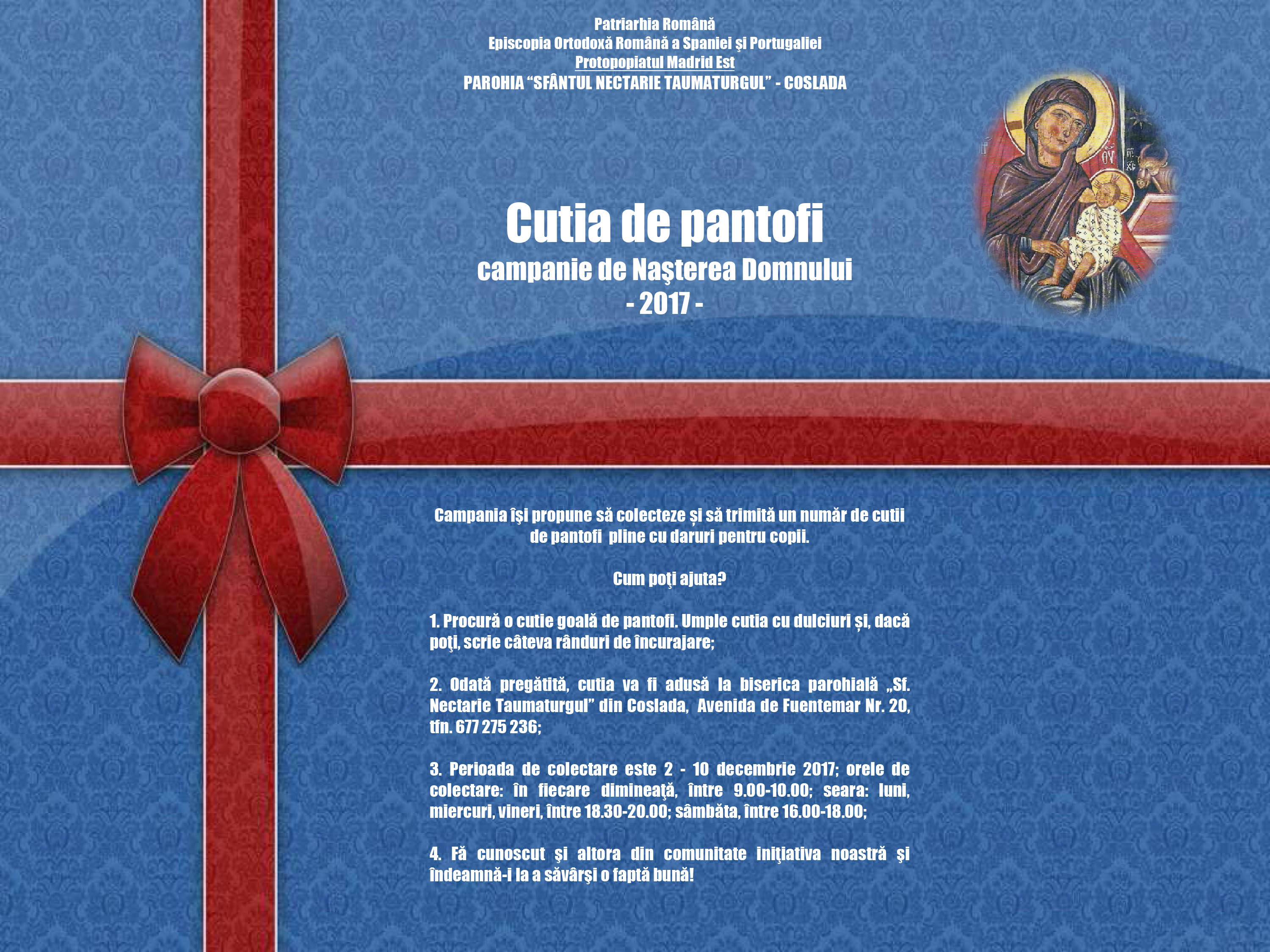3 decembrie 2017 Campanie umanitară parohială: „Cutia de pantofi” – ediţia 2017 admin_nec Uncategorized