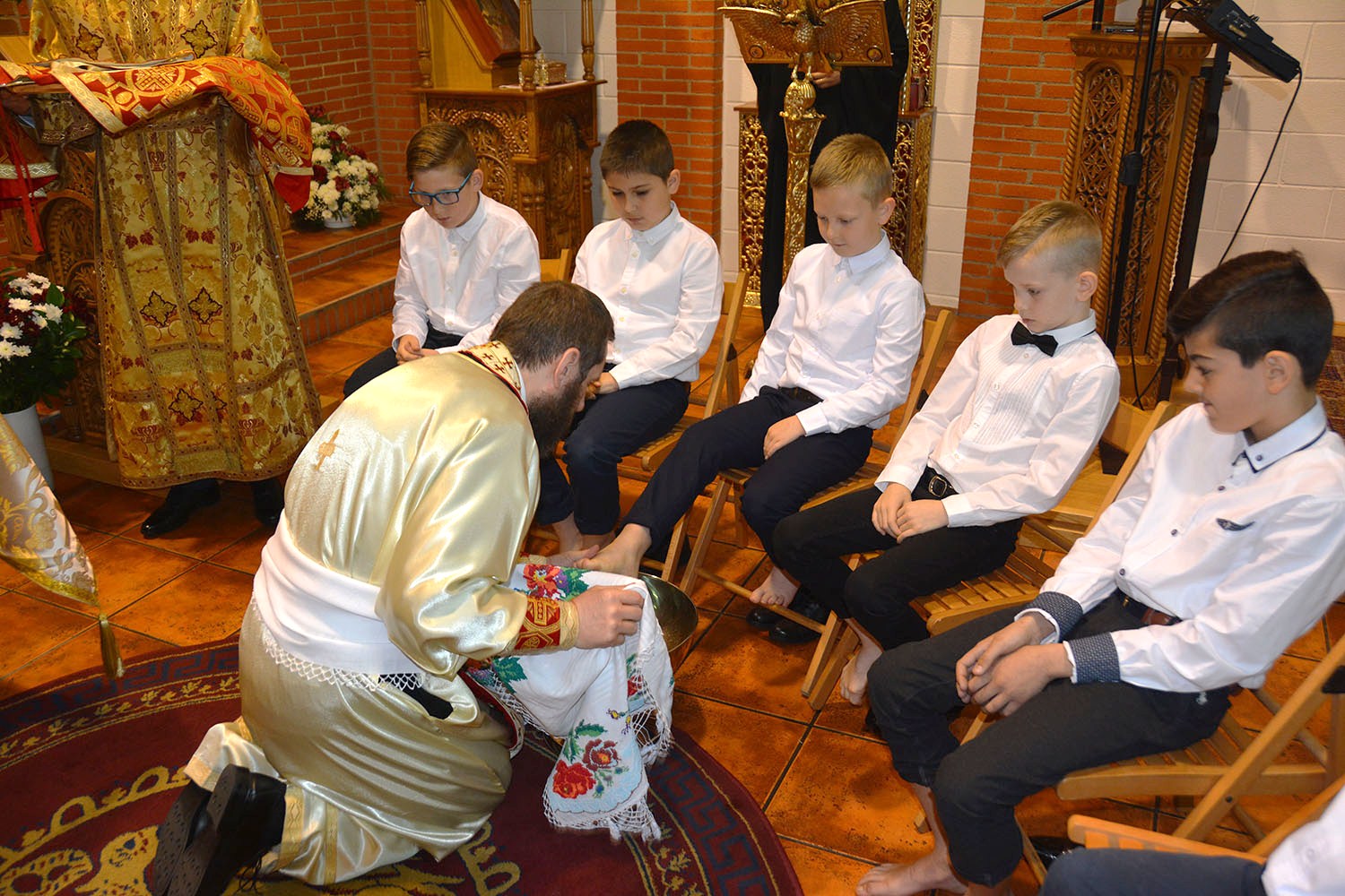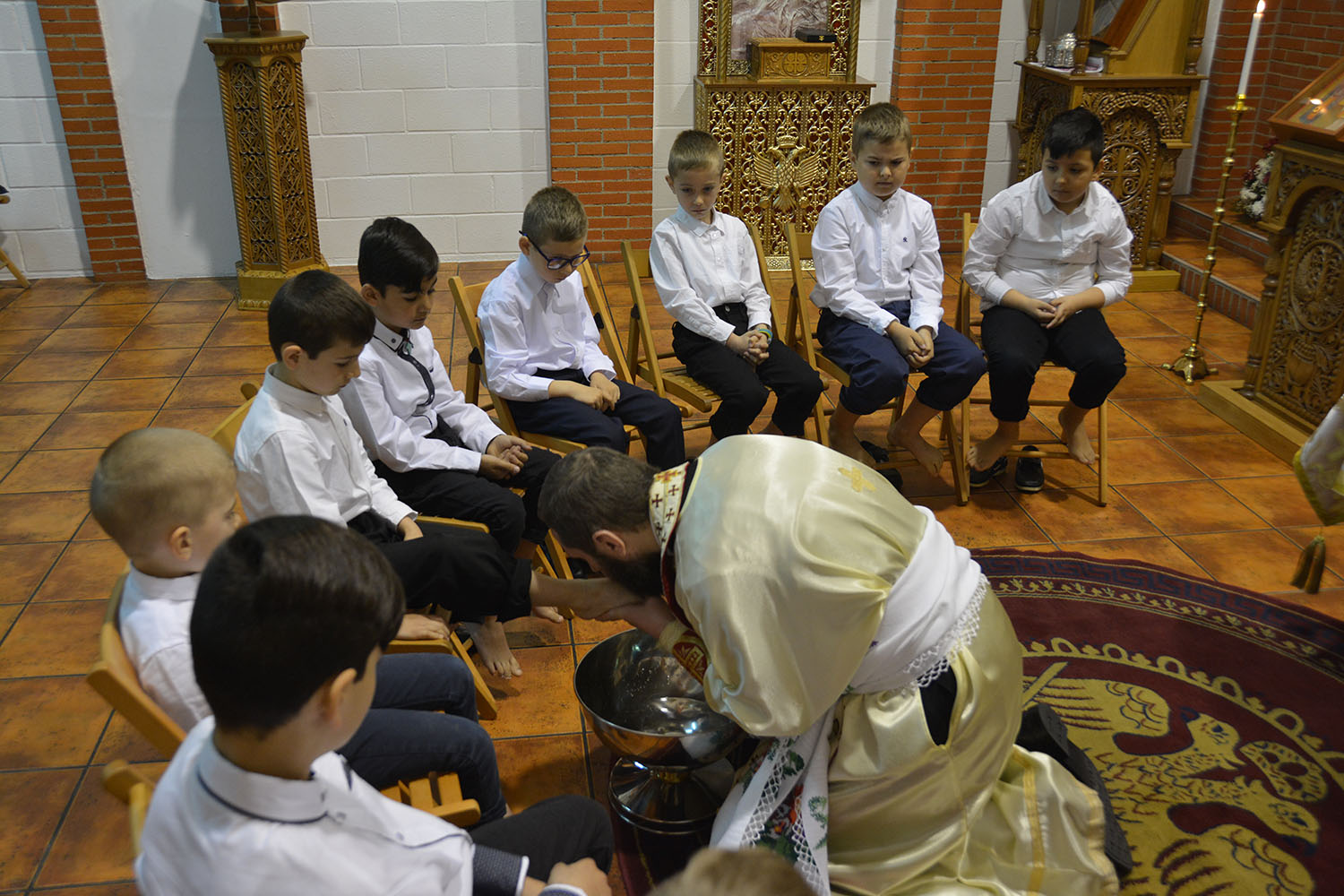 În biserica Parohiei “Sfântul Nectarie Taumaturgul”din Coslada, joi dimineaţă, în prelungirea Sfintei Liturghii, potrivit tradiţiei parohiale de 11 ani, s-a săvârşit Ritualul Spălării picioarelor, la care au participat 12 copii din cadrul şcolii parohiale “Sfinţii Martiri Brâncoveni”.